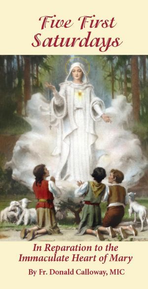 In reparation to the Immaculate Heart of Mary. At Fatima, Our Lady asked us to make reparation to her Immaculate Heart by means of the Five First Saturdays Devotion. In this pamphlet, Fr. Calloway offers a succinct presentation of all you need to know about this powerful and important form of reparation to Mary's Immaculate Heart.