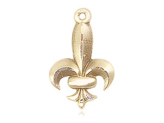 Fleur de lis medal, Gold Filled. Medal measures 1 1/8 X 3/4. Made in the USA. Manufacturers lifetime guarantee. Gift boxed.