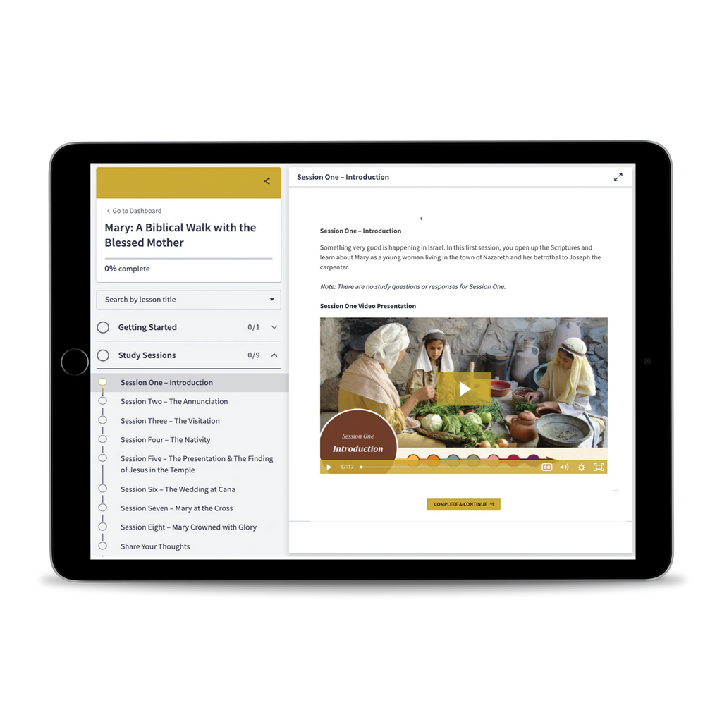 Mary: A Biblical Walk with the Blessed Mother is an extraordinary pilgrimage that reveals Mary’s unique role in God’s kingdom and in our lives. Filmed on location in the Holy Land, this study will place you in the midst of the powerful drama of her earthly life, taking you through her joys … and her sorrows. You will learn how she works in our lives today, drawing us ever closer to her divine Son. Seeing Mary in this way will change you forever. Mary will become a part of your daily life, and in your daily life, you will become more like Christ.