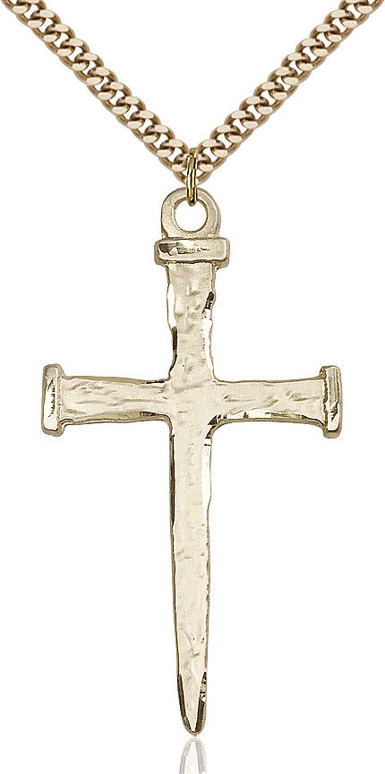Nail Cross medal, Gold Filled. Medal measures 2 x 1. Made in the USA. Manufacturers lifetime guarantee. Gift boxed.