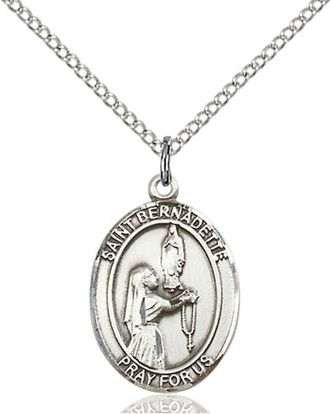 Saint Bernadette medal, Solid Sterling Silver. Made in the USA. Manufacturers lifetime guarantee. Gift boxed.