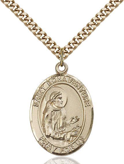 Saint Bonaventure medal, Gold Filled. Made in the USA. Manufacturers lifetime guarantee. Gift boxed.