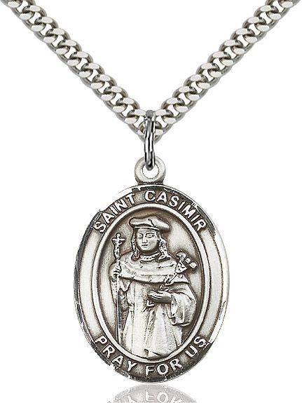 Saint Casimir of Poland medal, Solid Sterling Silver. Made in the USA. Manufacturers lifetime guarantee. Gift boxed.
