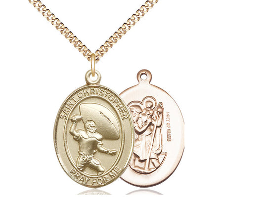 Football with Saint Christopher medal S5012, Gold Filled