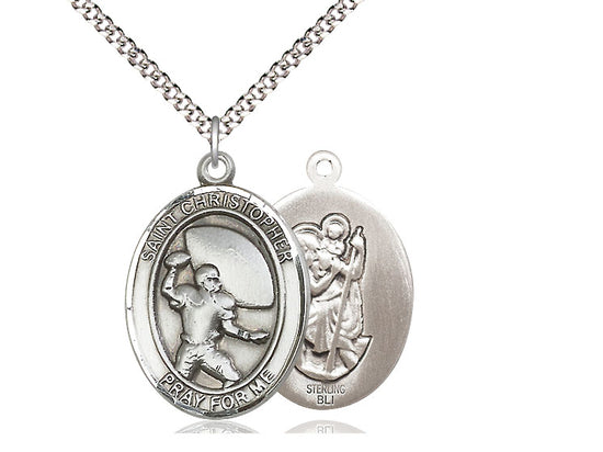Football with Saint Christopher medal, Solid Sterling Silver. Made in the USA. Manufacturers lifetime guarantee. Gift boxed.