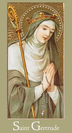 The Prayer of St. Gertrude prayer card contains an image of St. Gertrude with the following prayer: